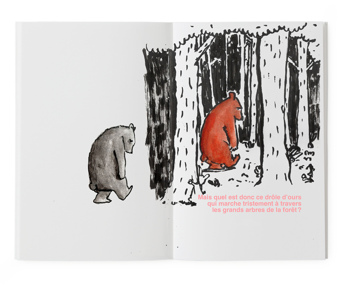 "Mais quel est donc ce drôle d'ours qui marche péniblement à travers les grands arbres de la forêt ? ..."